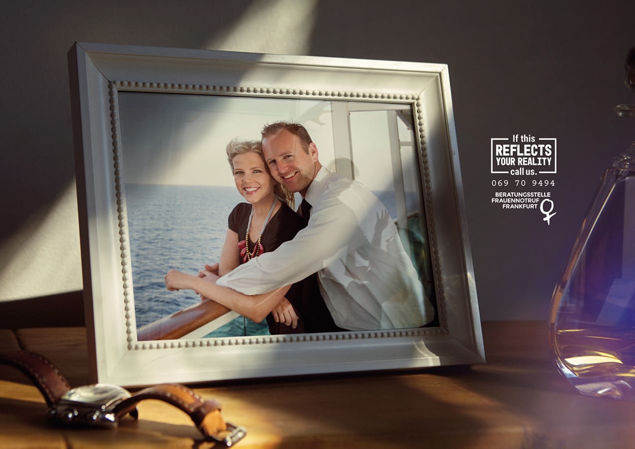 Domestic violence affects thousands of women, but is never easy to talk about openly. The ‘Frauennotruf Frankfurt’ offers confidential support to all women who have been threatened or affected by physical, or digital, violence and operates as a literal lifeline to thousands of women who are tormented in their own homes. I was responsible for the concept and copy of this awareness campaign which shows how some images of domestic bliss can have a brutal hidden truth behind them.